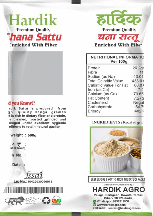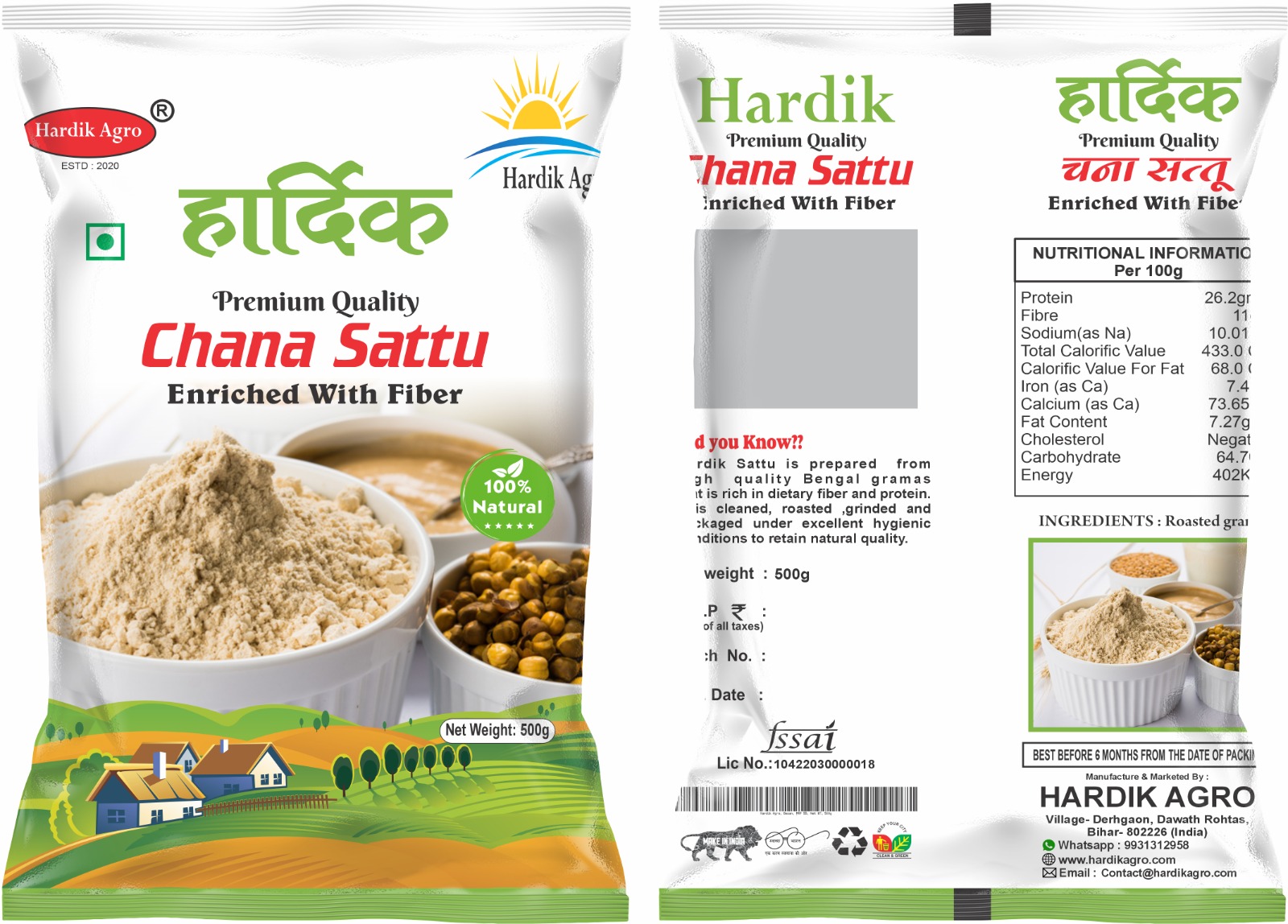 Hardik Sattu is prepared from high quality Bengal Grams high quality that is rich in dietary fiber and protein. it is cleaned ,roasted, grinned, and packaged under excellent hygienic condition to retain natural quality.